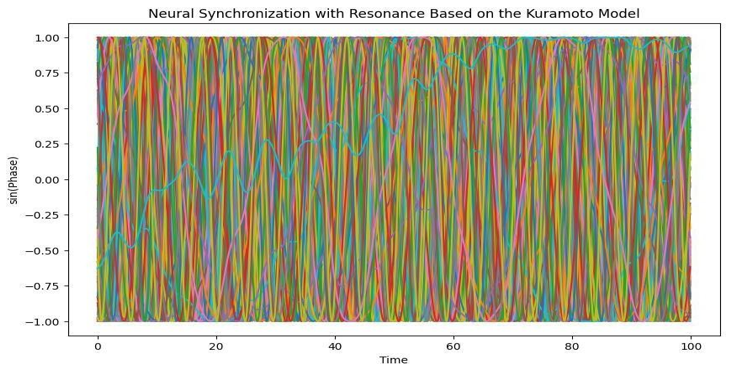 Time series data of phase angles and frequencies were collected. Metrics such as order parameter and mean field amplitude were calculated to quantify synchronization [9]. The data were analyzed using statistical methods to discern significant differences between the conditions. Phase-locking values were also calculated to understand the depth of synchronization.