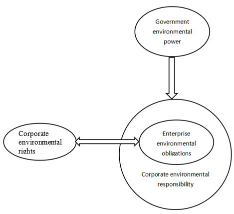 To achieve its ends, an enterprise must undertake certain environmental legal liabilities. Corporate environmental responsibility can be traced to the environmental obligation behind environmental right and environmental responsibility behind environmental power. Corporate environmental power indicates the power enjoyed by such organizations as enterprises to reasonably use environmental resources. It consists of two parts, namely the power of exploiting and utilizing natural resources and the power of emit or discharge pollutants within environmental tolerance (dumping or emission right). For the first part, it means natural resources owner and the entity having obtained the permit to develop, utilize, run and manage the state- owned natural resources are entitled to exploit such resources and get corresponding benefits. And for the second part, this power is also called dumping or emission power that is endowed by administrative authorities to the polluter to discharge pollutant or greenhouse gas to the environment within pollutant discharge (or control) limits prescribed by relevant laws and regulations [20].