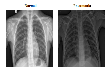 To address the challenge of accurately classifying chest X-rays as Normal or Pneumonia, we implemented a CNN. This architecture excels in image recognition tasks by efficiently extracting significant features from visual data, making it ideal for detailed medical imaging analysis. Figure 4 shows sample X-ray images from the dataset, highlighting Normal and Pneumonia cases. These images reflect the complexity of visual features that CNN learns to differentiate, aiding in robust classification of pulmonary conditions.