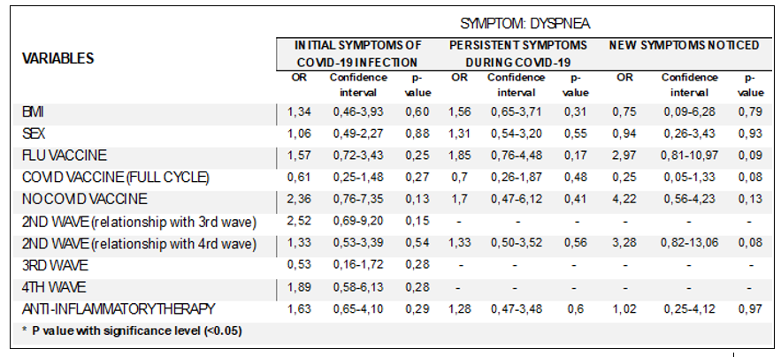 Table 5: Correlation Between Development of “Dyspnea Symptom” and Risk Factors Analyzed