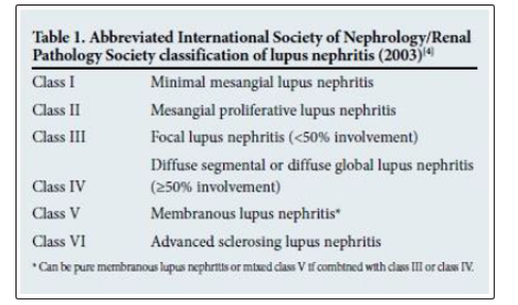 Systemic lupus erythematosus (SLE) is the most common disease systemic autoimmune disorders that cause kidney damage. AT Conversely, kidney damage is the most common and the most severe visceral involvement of SLE. The most frequent renal involvement is glomerular and there are several types of glomerulonephritis (GN) Lupus now evaluated according to classification histological ISN / RPS (International Society of Nephrology/Renal Pathology Society) [1]. Other glomerular disorders such as a Nephrotic syndrome with minimal glomerular lesions are possible but rare. Vascular or interstitial lesions related to lupus may be associated with glomerular damage; they are rarely isolated. Finally, lupus nephropathy is sometimes mixed with renal diseases associated with lupus, the most common being renal antiphospholipid Syndrome.