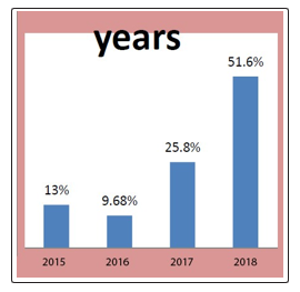 • The frequency of ludic nephropathy is increasing from 25.8% in 2017 to 51.6% in 2018, with a clear predominance of women at 67.74%.