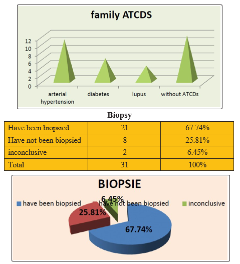 • 38.7% of patients were known for lupus disease and 12.9% had familial SLE antecedents.