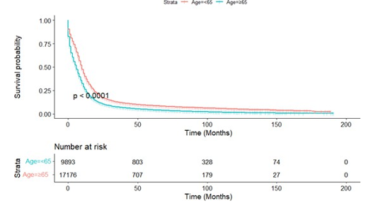 Figure A9.2: Kaplan-Meier Survival Curves of Overall Survival by Age≥65