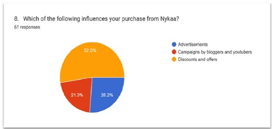 Interpretations- The Charts States that Discounts and Offers Plays a vital role for Influencing the Consumers to Purchase from Nykaa.