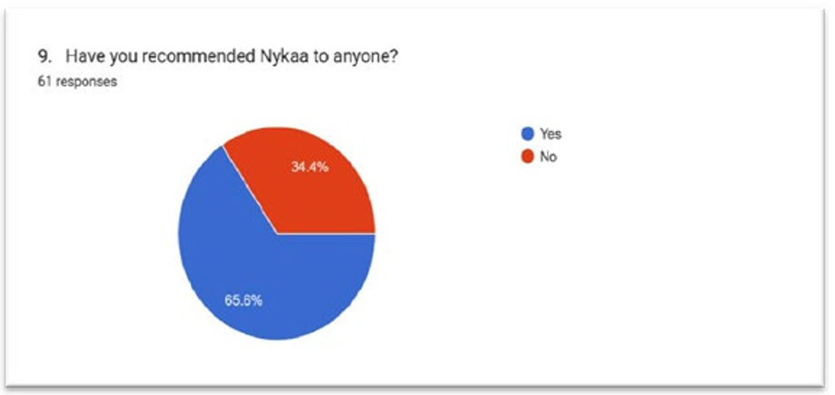 Interpretations- The Charts States that 65.6% have Recommended Nykaa.