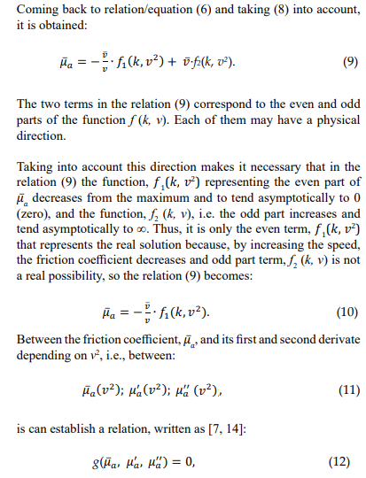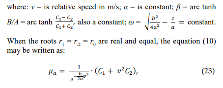 with v in m/s, the values of C1 and C2 are in direct proportional ratio with μa; the coefficient a influences directly, and the b one inversely the friction coefficient μa.