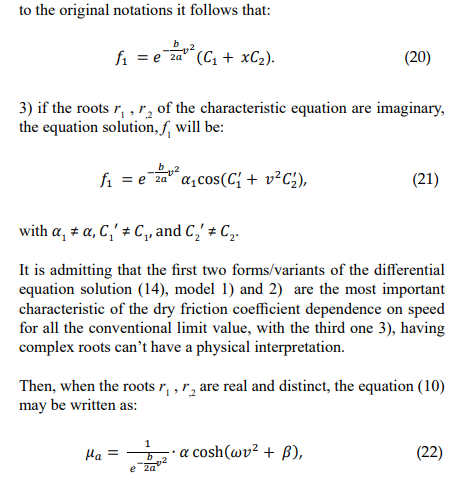 These two solutions of the linear, homogenous differential equation of the second-order model are the most characteristic part of the functional dependence of the dry friction coefficient in comparison with the normal load and speed for all values.