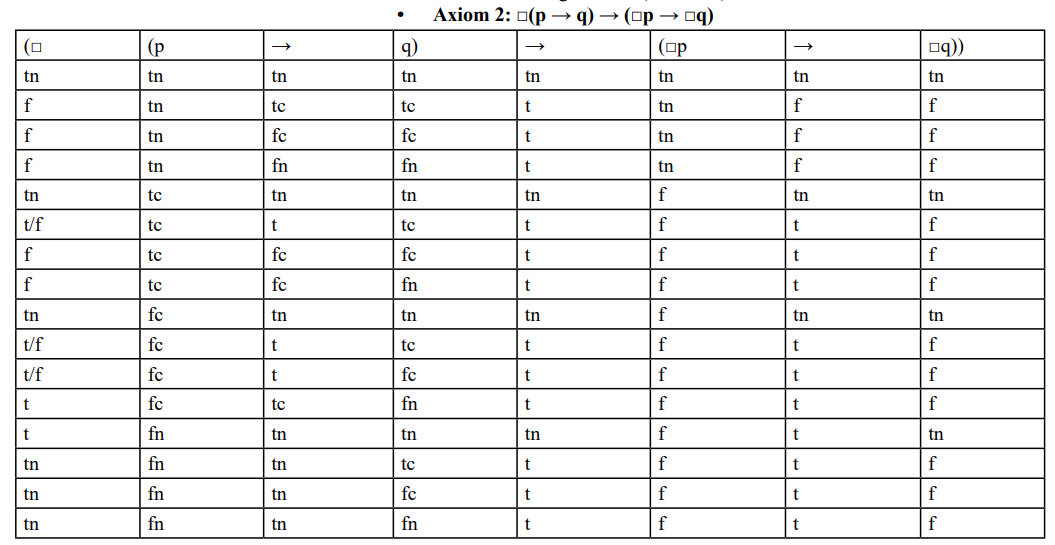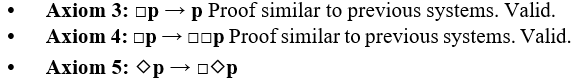 • Axiom 2: Proof similar to previous systems. Valid.