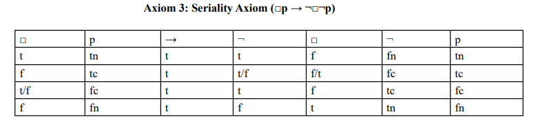 • KDm narrows this slightly (t, f, t/f), with t/f only for fc, as seriality rules out