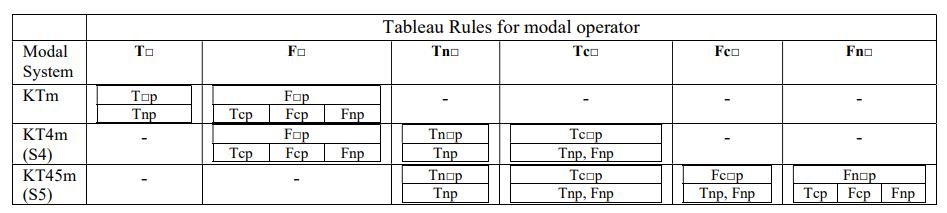 Finally, we show some examples of tableau tree proofs for the system Km. Below are the special rules for system Km.
