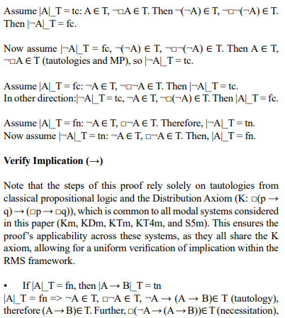 Moreover, this shift to truth values in RMS opens the door to exploring modal logics with truth value gaps (where a proposition may lack a truth value) and gluts (where a proposition may be both true and false). Notable works in this area include Kleene’s three- valued logic [1952], which introduces an "undefined" value, and Priest’s paraconsistent logic [1979], such as his Logic of Paradox (LP), which allows for truth value gluts to handle contradictions [7,8]. These systems are particularly relevant in contexts like vague predicates (e.g., "this heap is large") or paradoxical statements (e.g., the liar paradox), where traditional binary or relational semantics may falter. Some paraconsistent logics based on the RMS (quasi-matrix) method were constructed within deontic logic (Kuznetsov, A., 2004) [9]. A similar approach can be applied to the modal logics described in this paper.