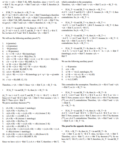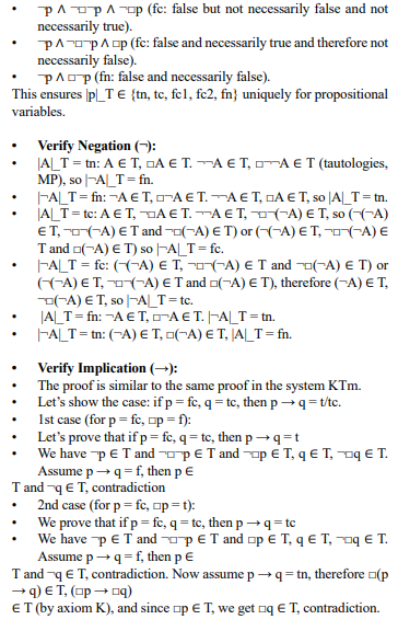 Conclusion: If A is valid but not provable, ¬A is consistent, extends to T, ¬A valid formula, then A is not a valid formula, contradicting the assumption. KDm is complete.