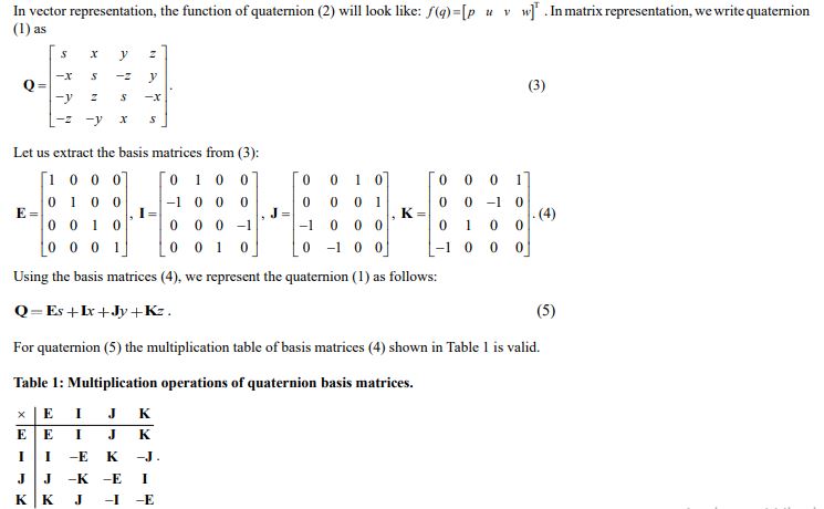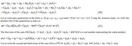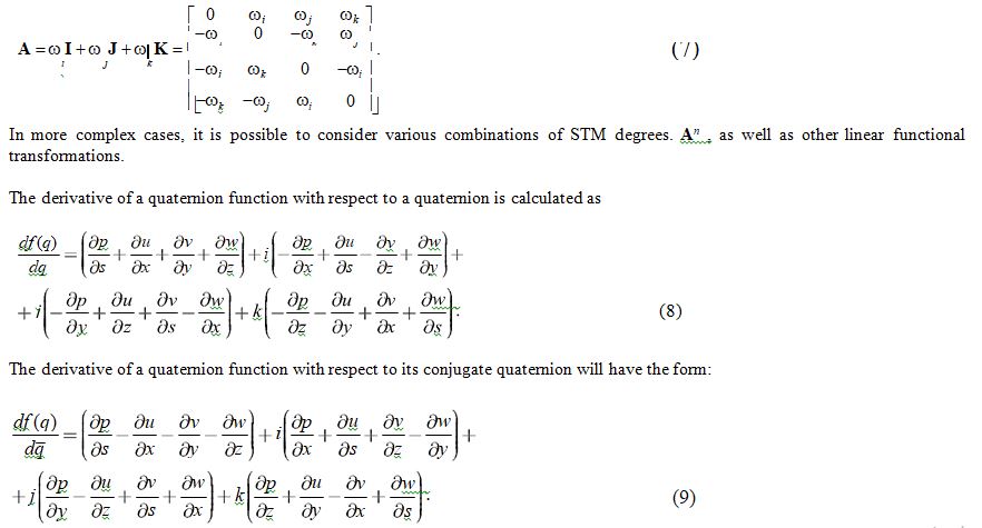 In the resulting vector (28), instead of a function of a quaternion f (q) and, accordingly, a pure quaternion f (q) , one can use the vectors