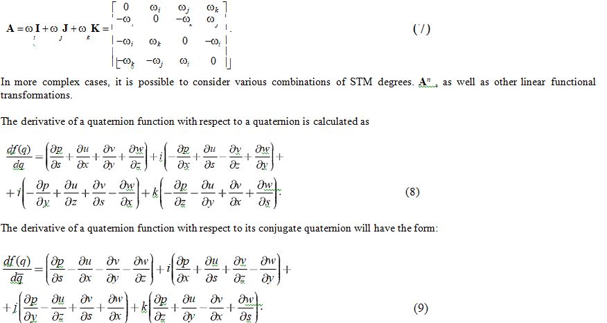 Let us consider the use of quaternion (3) as a differential operator for the equation of dynamics in the state space [5]: