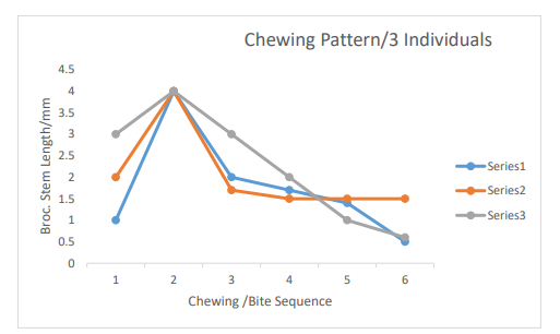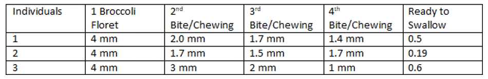 Table 6: Chewing Pattern Expressed in Broccoli Particles Measurements (mm)/bite