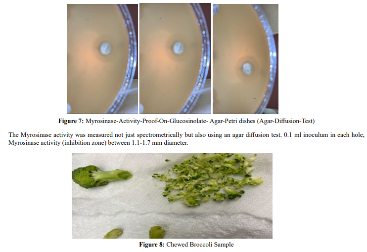 The Myrosinase activity was measured spectrometrically using an agar diffusion test—0.1 ml inoculum in each hole.