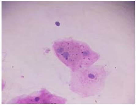 Figure 1: Showing Micronucleus Positivity in Buccal Epithelial cells Stained with Papanicolaou Stain