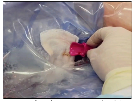 Figure 3: The use of the 8F percutaneous access sheath gives the way for active maneuver of the nephroscope inside the collecting system during lithotripsy with no damage in case of the acute angle between the calyx axis and the access tract.