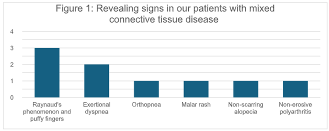 Conclusion: MCTD remains a rare disease with variable clinical expression, requiring particular diagnostic vigilance. Early identification of evolving forms and multidisciplinary monitoring are essential to prevent complications and guide treatment