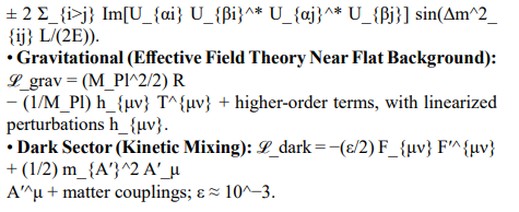 • Observables are aggregated across chunks with bootstrap confidence intervals. Cosmological parameters are compared against Planck 2018 and DESI constraints. Gravitational-wave spectra h(f) are compared to LISA sensitivity curves. Neutrino masses and mixing parameters are cross-checked with KATRIN and JUNO [5,8].