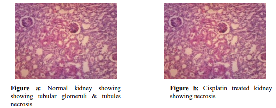 Cisplatin inhibits the activity of antioxidant enzymes (Glutathione and lipid peroxidase) in rat kidneys suggesting that cisplatin cytotoxicity results from the generation of reactive oxygen species (ROS). The results obtained in this study correlate with previous reports that lipid peroxidation contributes to cisplatin induced nephrotoxicity [13].