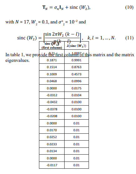 We demonstrated that the “integer maximum element” algorithm, successfully operated on the accurate moduli and eigenvalues of this Toeplitz matrix, is inappropriate for operations with the estimates of these parameters drawn from the sample covariance matrix