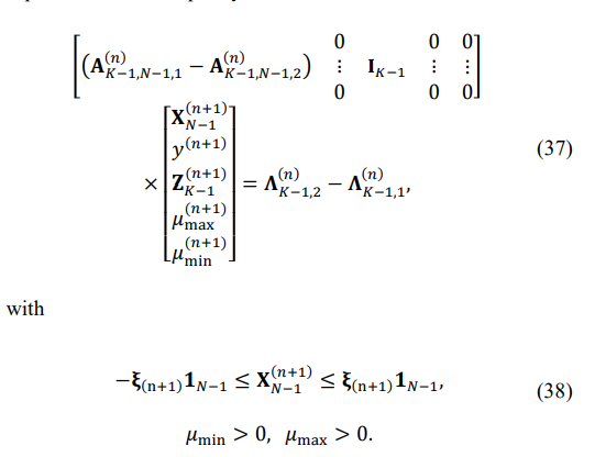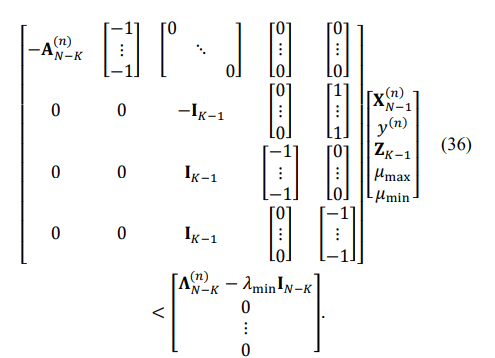 Since the MATLAB LP routine requires “negative” inequality after multiplication of (30) by -1, we get: