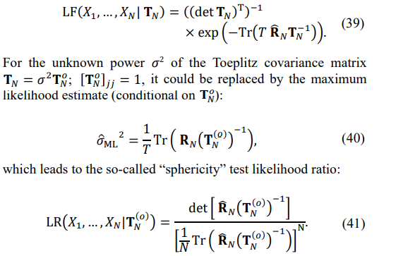 - Turmon, M. J., & Miller, M. I. (2002). Maximum-likelihood estimation of complex sinusoids and Toeplitz covariances. IEEE transactions on signal processing, 42(5), 1074-1086.
