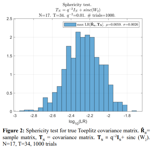 in expectation that such equalization should enhance the LR of the symmetric Toeplitz matrix, increasing the chances of getting the globally optimum solution by the LR optimization using the MATLAB fmincon routine. In reality, we discovered that by using the results of the “moduli and eigenvalues” optimization as the initial solutions, the fmincon routine always converged to the globally optimal ML solution, apart from the rare cases when it converged to non-positive definite Toeplitz matrices.