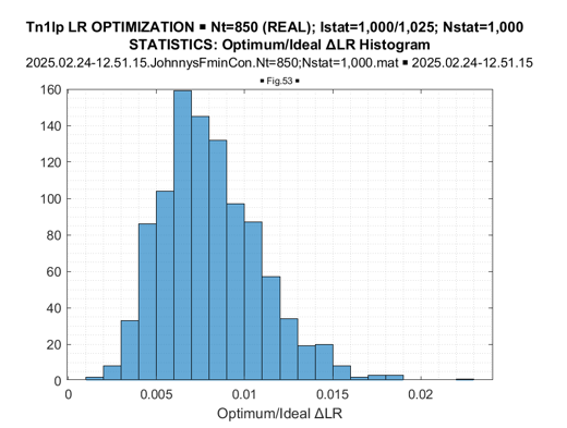 Figure 24: Complex-Valued Toeplitz Matrices: ΔLR = (Optimal LR –Ideal LR) Histogram