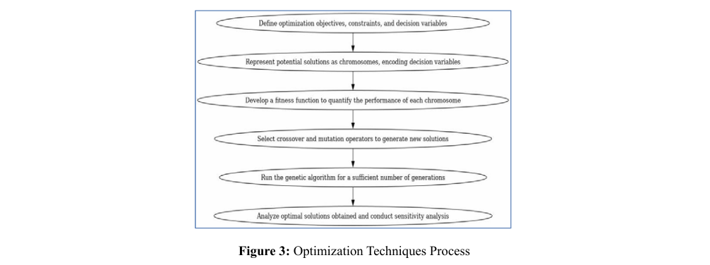 To utilize genetic algorithms in the design of CCPPs, it begins with describing the optimization problem with objective functions, constraints, and decision variables. Some of the goals that may be used in the formulation of the objective functions of a CCPP include thermal efficiency, the rate of fuel consumption, and emission rates, while some of the constraints that may be employed include physical limitations of the operation, operational margins, and legal requirements. Depending on the issue formulation, we next determine where to map viable solutions or feasible optima and how to place them into chromosomes; choice variables are then picked and discretized into real values inside the chromosomes.