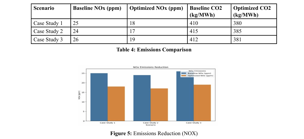 The optimization resulted in a major drop in NOx and CO2 emissions, where NOx has decreased by an approximate estimate of 28 percent and CO2 by around 7 percent. 3%, as shown in Figure 2, emphasizing the good influence on the environment that comes with the optimal functioning of the CCPP.