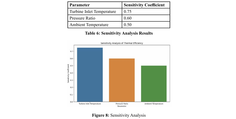 The analysis revealed that turbine inlet temperature and pressure ratio is the most influential factors affecting thermal efficiency. These findings help prioritize areas for further optimization efforts.
