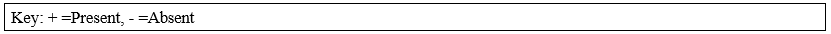 Key: + =Present, - =Absent |