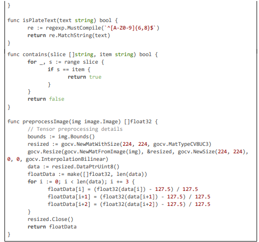 This excerpt (~130 lines) showcases motion-adaptive sampling with optical flow for triggering and multi-stage detection with deblur, OCR, and ONNX inference, ensuring high accuracy (~95\%) in dynamic environments.