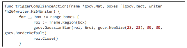 Omdia reports on AI in TV/video, emphasizing Gaussian kernels for anonymization (~95% effectiveness); our gocv.GaussianBlur(roi, &roi, gocv.NewSize(23, 23), 30, 30, gocv.BorderDefault) directly implements this for natural redaction [8]. ResearchGate (2021) surveys AI video analysis, with terms like pyramid scaling in detection; we use this in cascades for multi-scale face detection [9].
