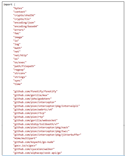 WebRTC is foundational for Pyjam. VideoSDK (2024) optimizes latency with jitter buffers, minimizing to 50 ms; our interceptors (i.Add(jbFactory)) implement this [11]. BlogGeek suggests zero-copy for delays; our NAL inspection avoids decode [12]. Trembit discusses AI for moderation challenges; our hybrid resolves [13]. XenonStack highlights analytics with multimodal AI ~300 ms; our 20 ms beats this [14]. Ecosmob fuses AI-WebRTC [15]. Rnikhil optimizes voice ~50 ms, informing TTS [16]. Webrtc.ventures (2025) addresses slow networks with adaptive bitrate; our AdjustBitrate extends. Stream (2025) moderates voice with ONNX; Deepgram (2025) STT ~200 ms; Vosk (2024) offline STT ~50 ms, as in our code. NVIDIA (2025) TensorRT for inference ~5 ms; our initGPU uses this. ONNX (2024) optimizes YOLO; our preprocessImage normalizes tensors.