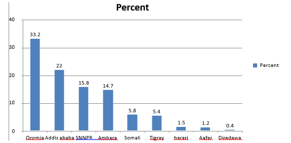 Most common regions where patients came from are Oromiya (33.2%), Addis Ababa (22%) and SNPPR (15.8%) respectively.