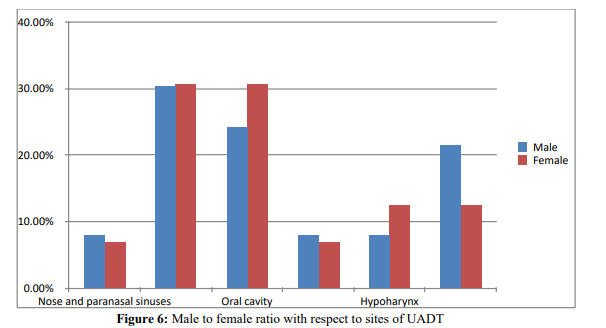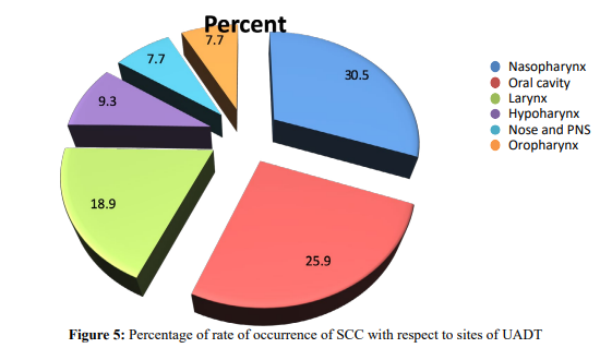 Conclusion and Recommendation: This study concluded that majority of patients fall in the age group of 31 to 40 with male predominance of 2.6 to 1. Late presentation is a rule since most patients with UADT-SCC has advanced disease at presentation with significant nodal neck diseases. Nasopharynx is the commonest site of primary tumor forboth males and females. It's also the commonest site of primaries with higher percentage of positive nodal diseases at presentation. Chances of having positive cervical nodal disease at presentation were very high in patients with advanced T diseases. Pattern of metastasis of most sites are in line with the current accepted knowledge of practice. Research designs with better strength should be used to study the clinicopathologic behavior of UADT-SCC both nationwide and in region specific setups. Institutional cancer registry should be improved and made easily accessible to researchers. Patient’s medical records should be complete. Policies on preventive measures and screening tools should be designed. Health seeking behavior of the community should be improved. Referral system should be made easy for patients with suspected cases.