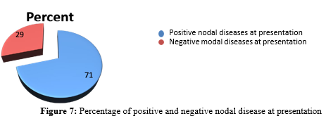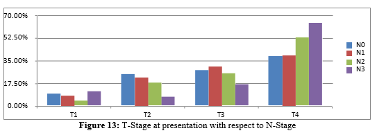 Late presentation in terms of advanced T stage (T3 and T4) of 74.1% at presentation, cTNM (stage III and IV) of 88.1% at pre- study done in Nigeria revealed chances of having stage III and IV disease at presentation is greater than 80% [25]. This could be due to lenient health seeking behavior, socioeconomic factors, lack of screening tools in primary health facilities and procrastinated re- ferral process.