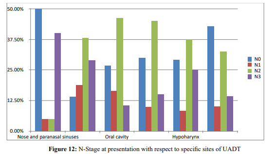 There is no study done in the incidence and pattern of nodal me- tastasis in hand and neck cancer in our institution so this study also helps to enlighten the responsible health care works and patients on the seriousness of advanced UADT-SCC and paves the way for future studies intended to determine prognosis, survival and dis- tant metas tasis as presence of nodal diseases at presentation is the single most important factor that determines the aforementioned areas of studies.