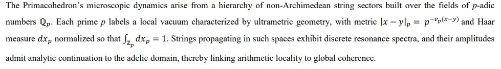 Citation: Setiawan, S. (2025). Primacohedron: A p-Adic String and Random-Matrix Framework for Emergent Spacetime. Adv Theo Comp Phy, 8(4), 01-61.