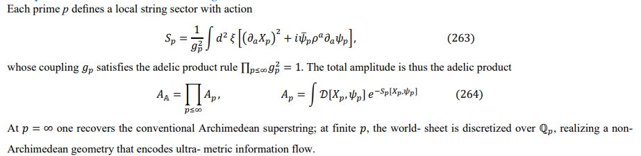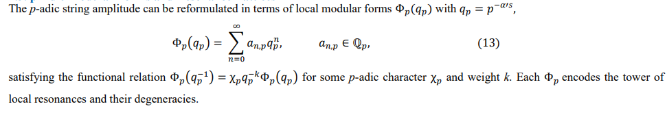 1. Local p-adic strings encode discrete temporal resonances (Equation 8);