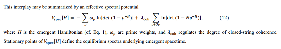 where Npdenotes the norm of the ideal p. While the open sector drives temporal chaos, the closed sector introduces correlations among distinct primes, thereby producing spatial coherence. The relative balance between open and closed resonances determines the "phase" of spacetime: purely open dynamics correspond to a temporally chaotic yet spatially fragmented phase, whereas inclusion of closed admixtures stabilizes geometry and yields smooth emergent curvature.