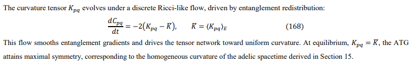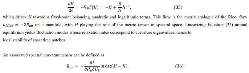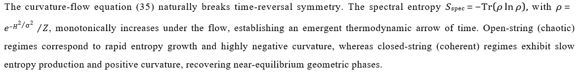 (3) The curvature-flow dynamics (35)–(37) yield an information-geometric analogue of Ricci flow;
