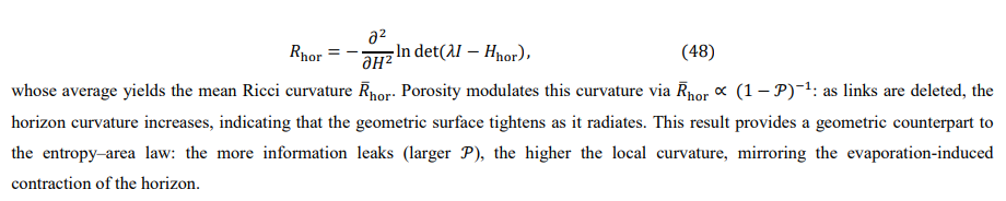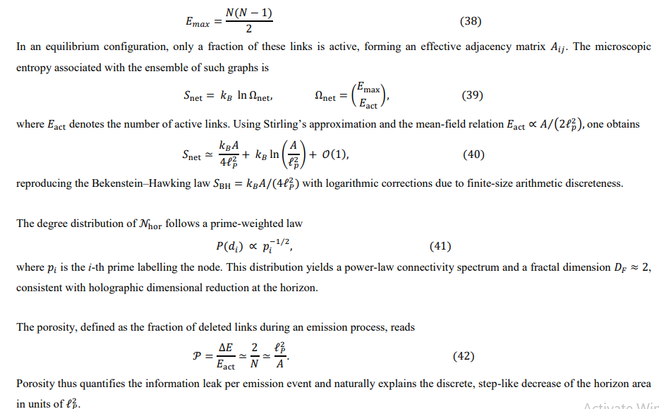 Let the horizon be represented by a connectivity graph Nhor with N Planck-scale nodes. Each node corresponds to a local spectral domain (an eigenvector of H£), and each edge corresponds to a correlation link. The total number of possible edges is