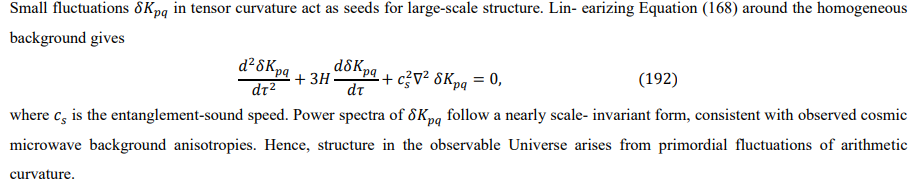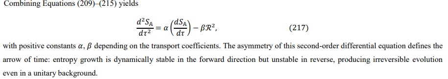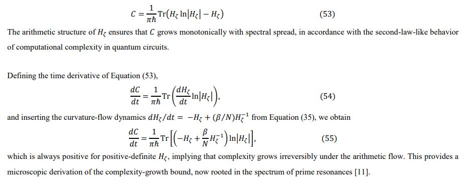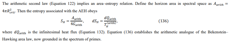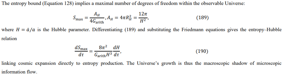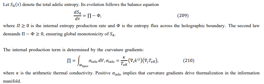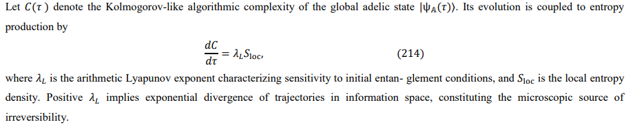 (4) Spectral entropy growth defines the temporal direction and connects microscopic arithmetic chaos with macroscopic spacetime expansion.