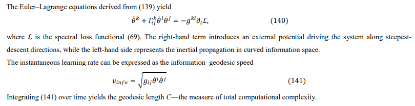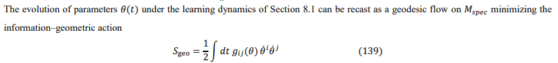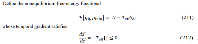 The dynamics of curvature on the spectral manifold are governed by a gradient-flow equationderived from a free-energy functional F[H] generalizing Equation (29):