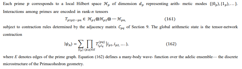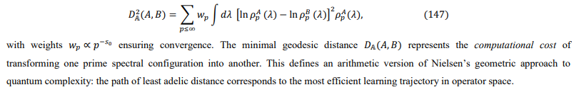 (iii) Adelic unity. The fusion of p-adic and Archimedean components embodies an ultimate symmetry: discreteness and continuity, logic and geometry, are dual manifesta- tions of one arithmetical substrate. The Primacohedron thus stands as a candidate for a Unified Theory of Information and Geometry.